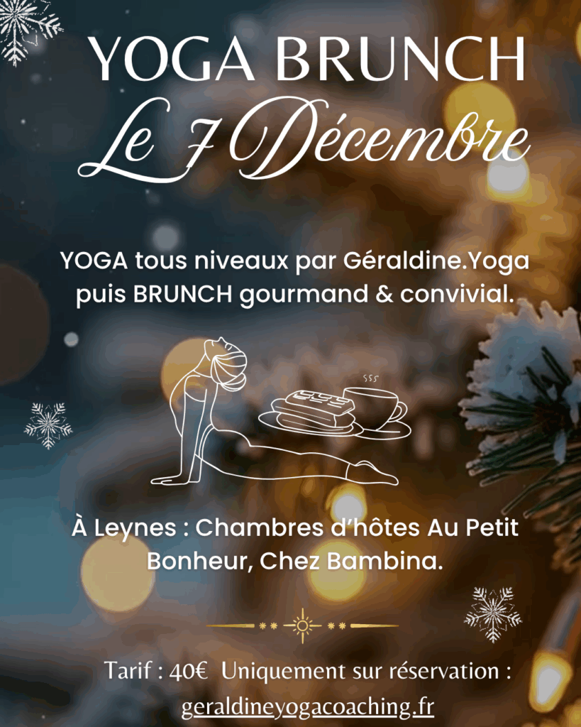Le Yoga Brunch revient pour une édition toute en chaleur, détente et convivialité, dans le cadre chaleureux des chambres d’hôtes Au Petit Bonheur chez Bambina à Leynes.